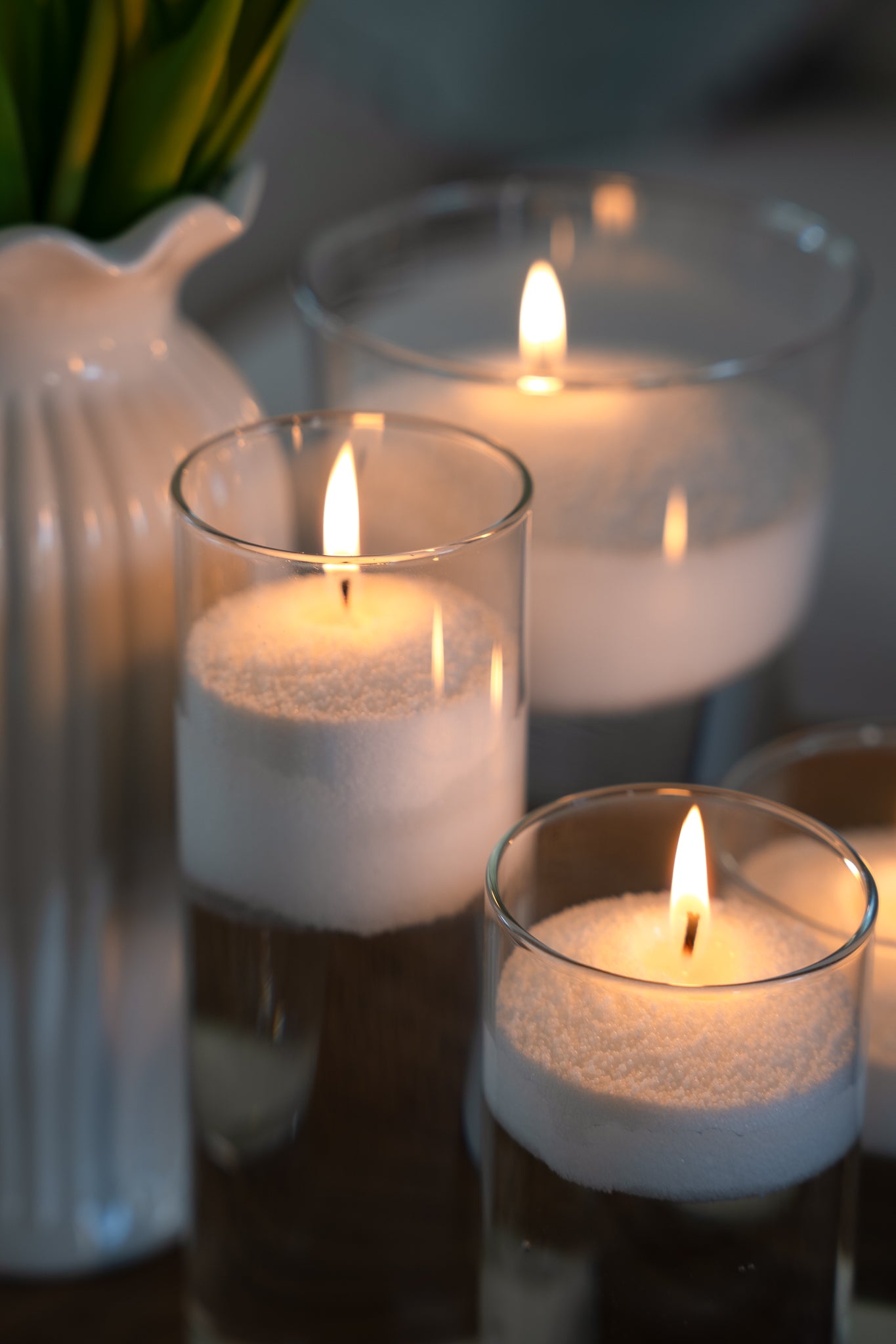 - Two luxurious pearled candles that keep their elegant look even after burning